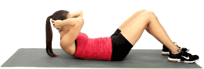 - Скручивания (прямая мышца "отвечает за кубики пресса", большая грудная, поперечные, наружные и внутренние косые). Лежа на спине согните ноги в коленях, руки за голову. Поднимайте верхнюю часть корпуса и следите за тем, чтобы нижняя и средняя часть были прижаты к корпусу. В такой малой амплитуде выполните упражнение 20-25 раз.